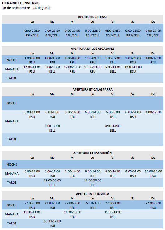 Horario de las instalaciones